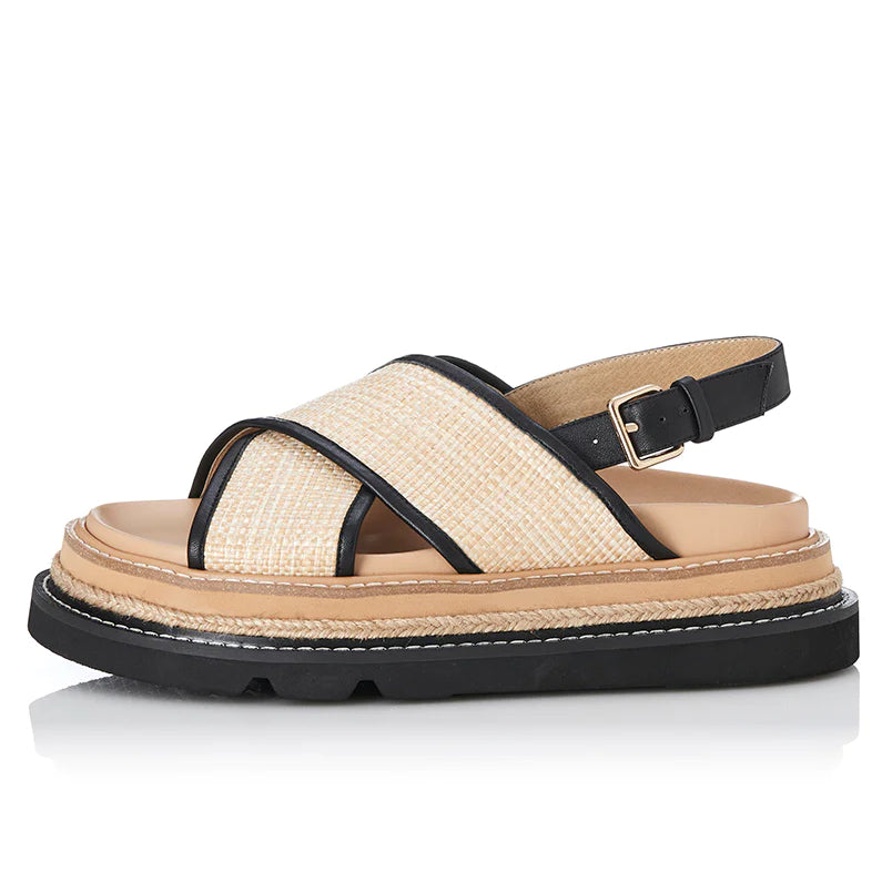 ALIAS MAE Verona Sandals - Black / Natural Raffia