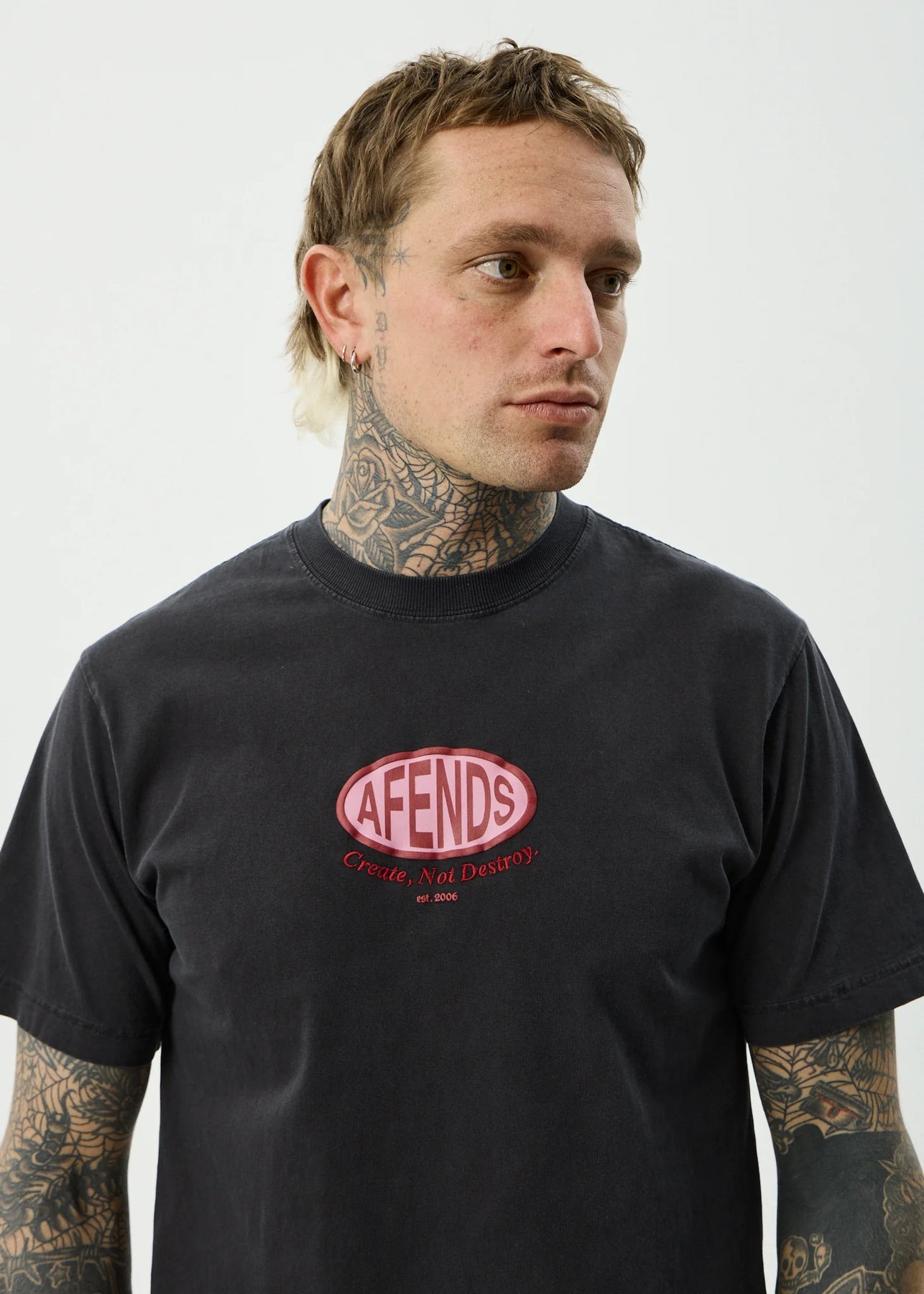 Built for pavement sessions and salty air days. This retro fit tee comes in a recycled cotton blend dry jersey with a premium, slightly structured hand feel. Finished in a pigment-dyed Stone Black wash with cracked, puff and embroidered detailing that lands somewhere between skate heritage and tattoo flash.