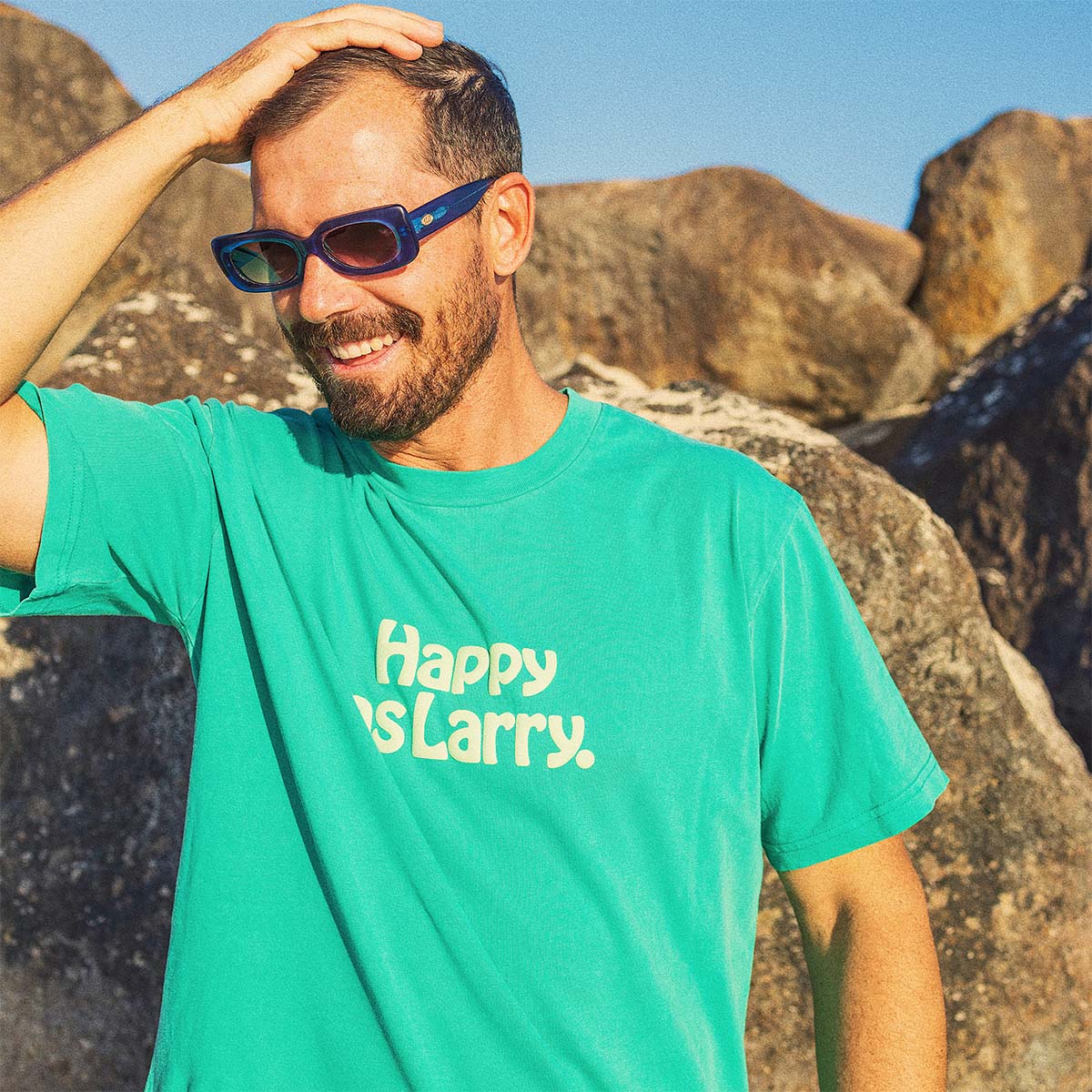 Golden sunsets, cold beers, and close mates. We’re pretty chuffed with the Happy As Larry Regular Tee in Green, and reckon you will be too.