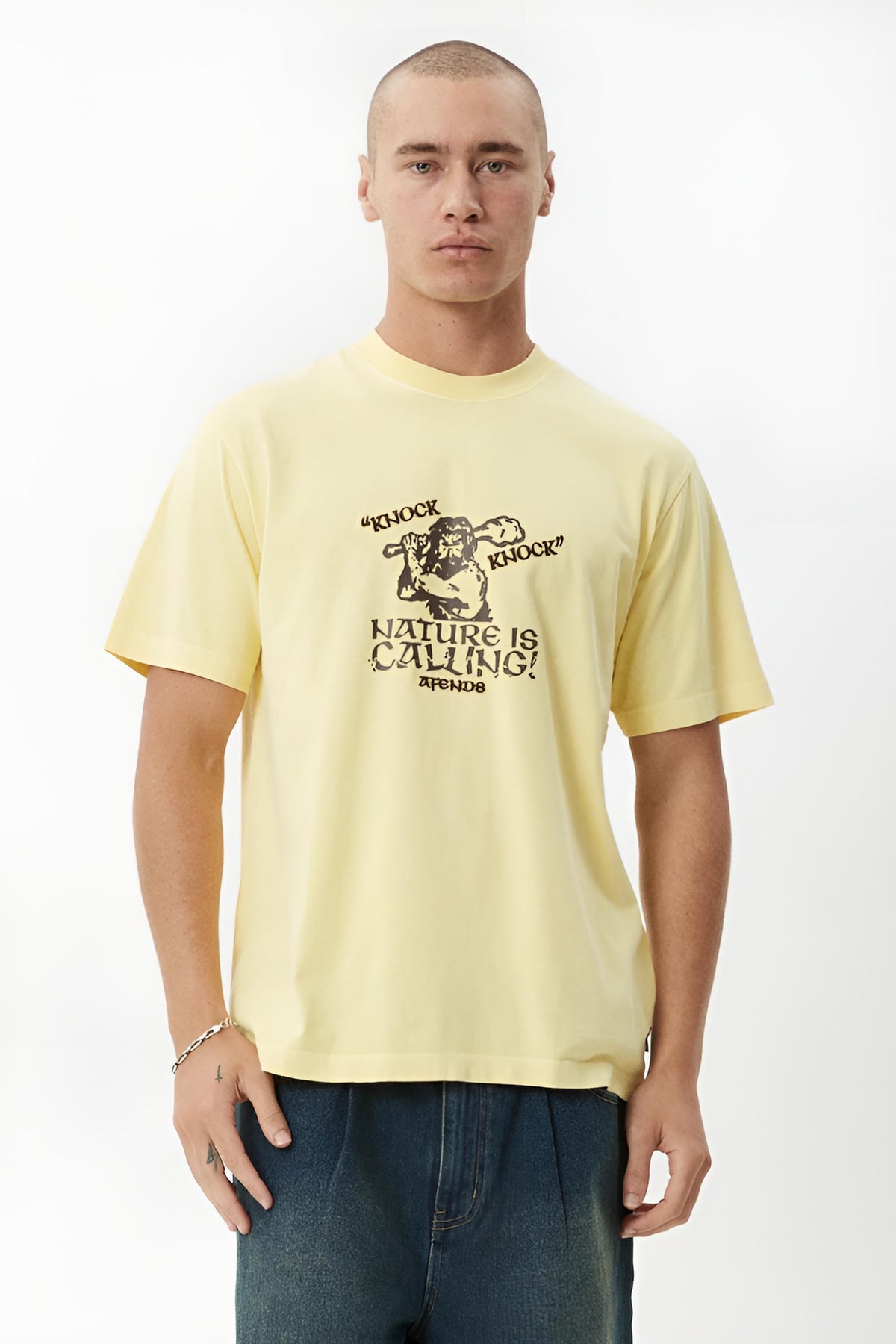 AFENDS Knock Knock - Retro Tee - Washed Lemon