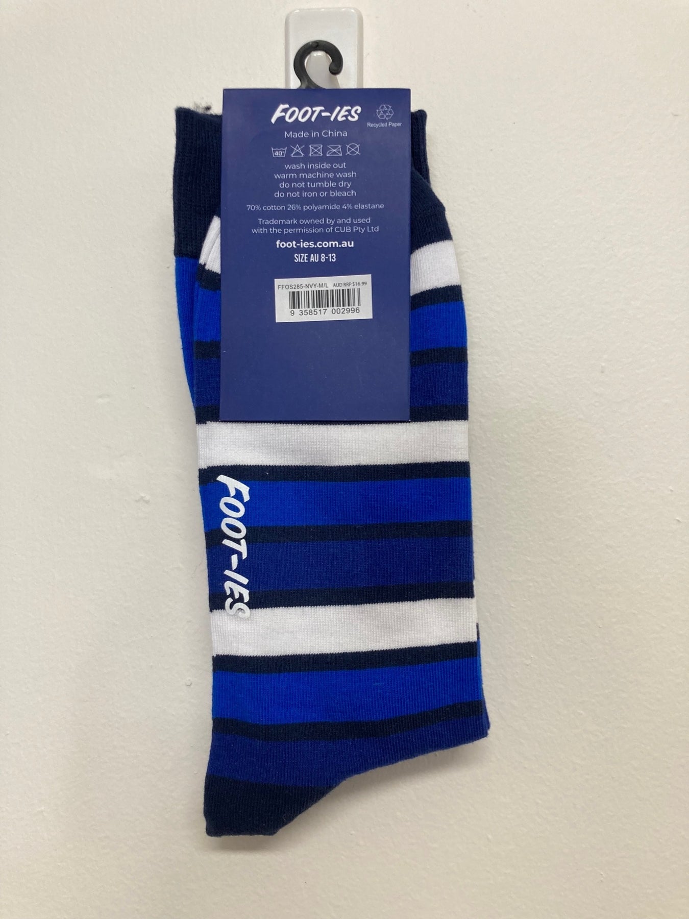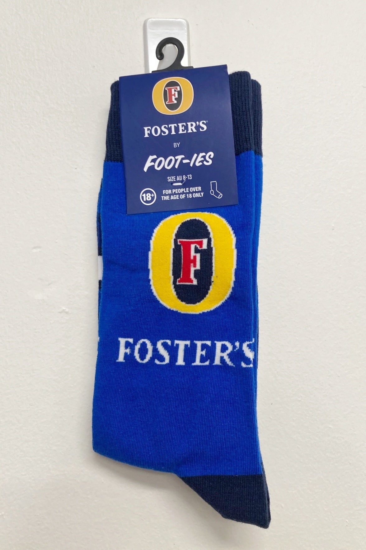 FOOT-ies Fosters CUB Trademark Label Crew Socks Blue