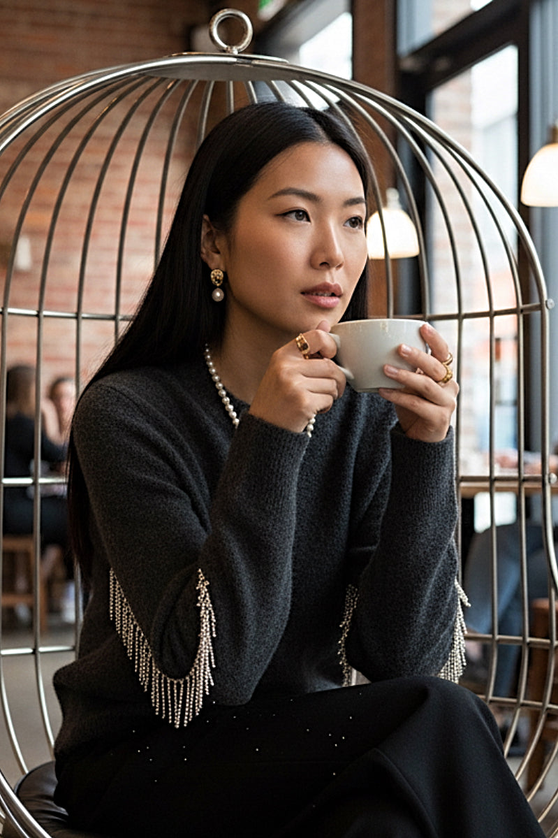 HAMMILL & Co Womens Tres Bien Sweat - Winter White